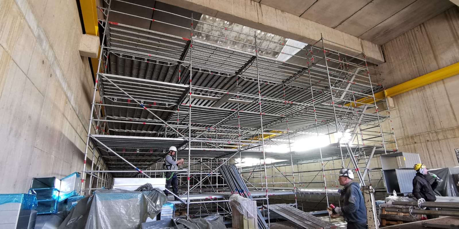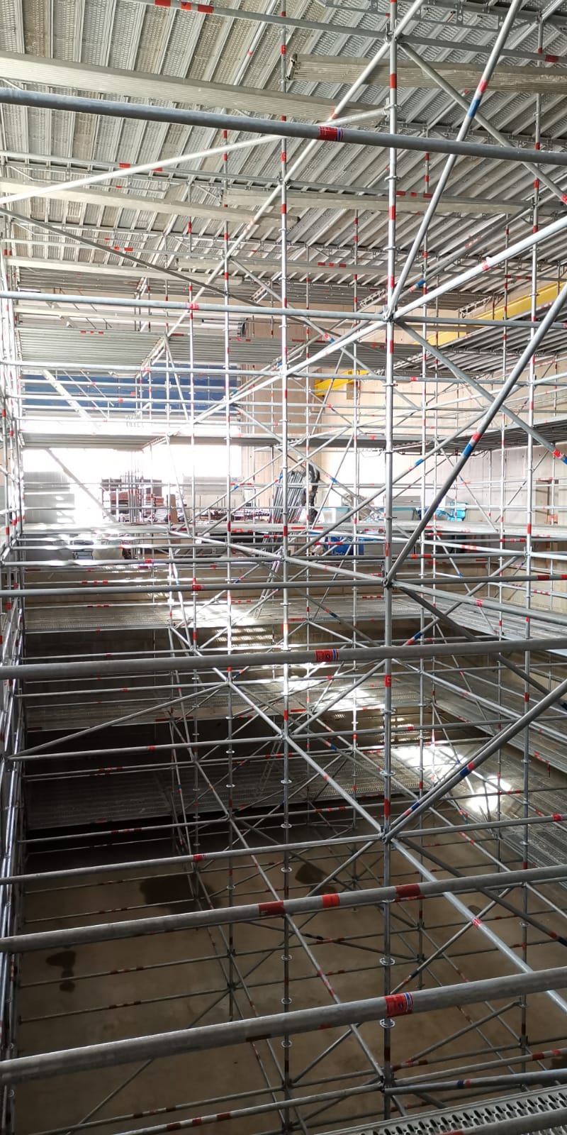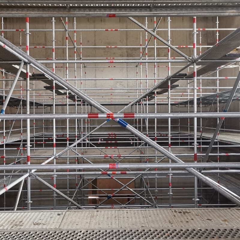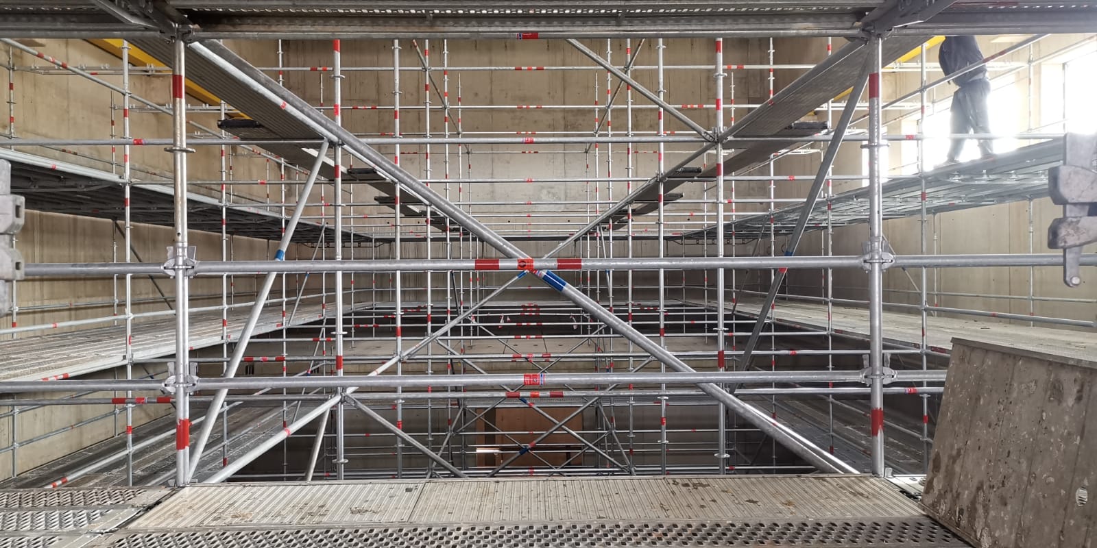 - Planung, Lieferung und fachgerechte Montage des Modulgerüstes als freistehende Konstruktion