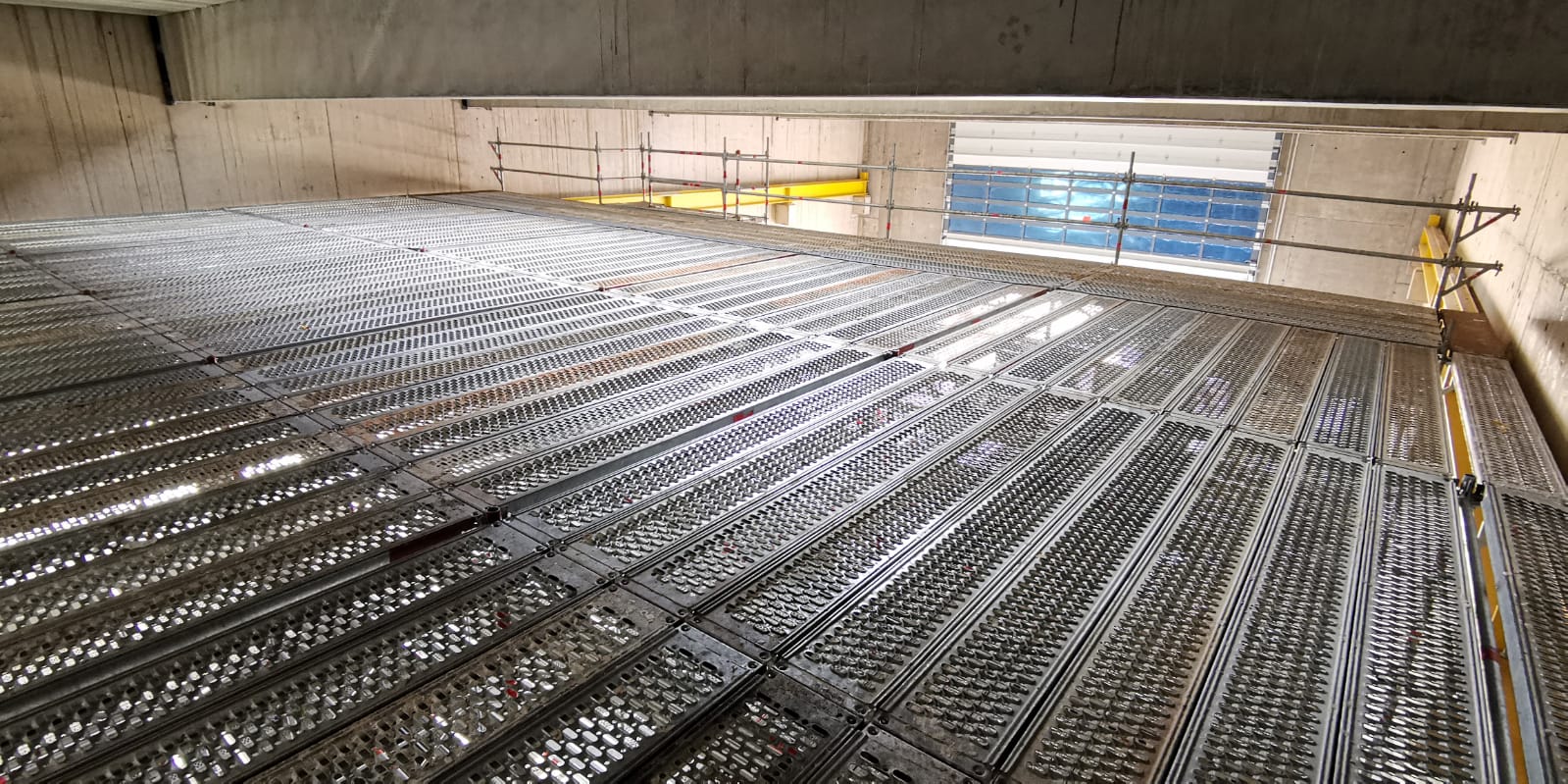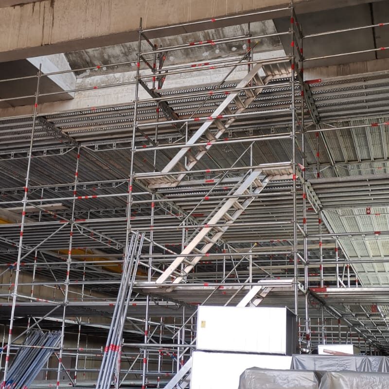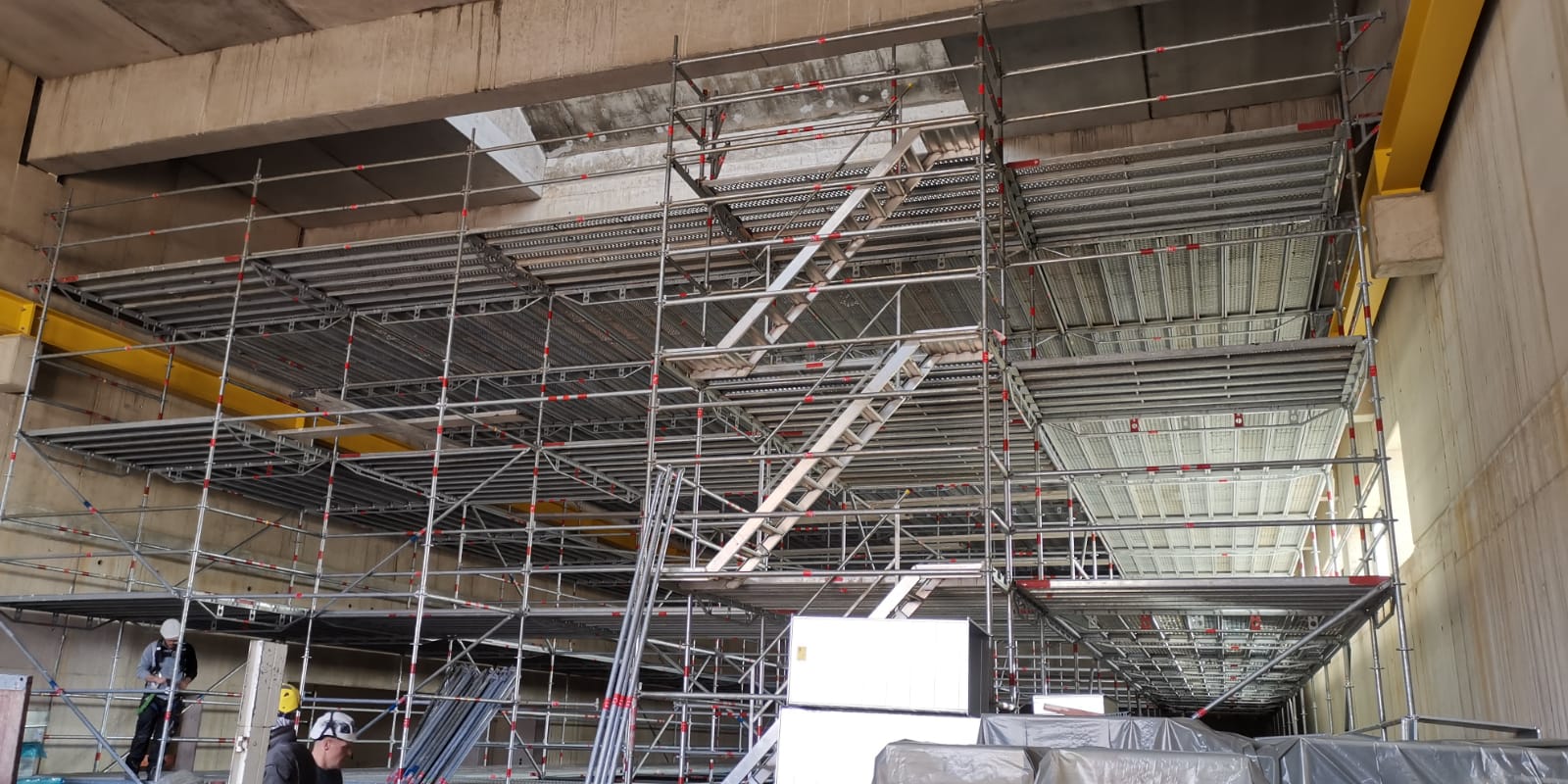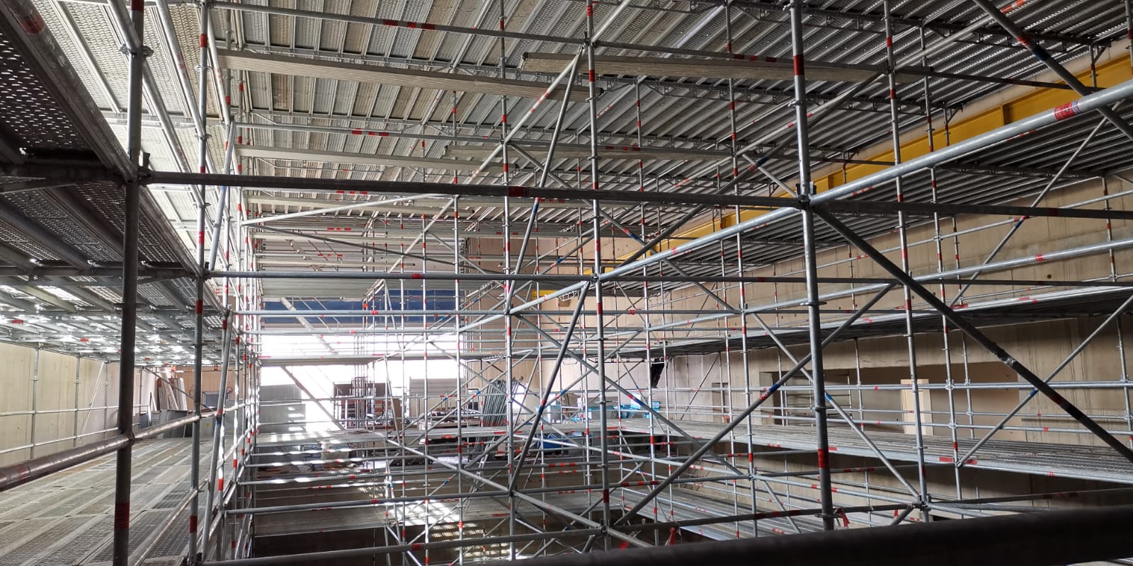 - Planung, Lieferung und fachgerechte Montage des Modulgerüstes als freistehende Konstruktion